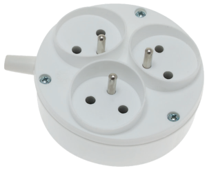 Gniazdo wielokrotne umożliwia podłączenie trzech odbiorników do jednego punktu zasilania przy zachowaniu styku ochronnego. Wykonanie jest dobierane do zastosowań użytkowych, w tym do budowy i serwisu przedłużaczy oraz rozgałęźników w instalacjach 230 V.