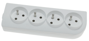 Gniazdo przenośne czterokrotne 2P+Z, 16A 250V, białe. Do rozbudowy przedłużaczy i rozgałęzień 230 V.
